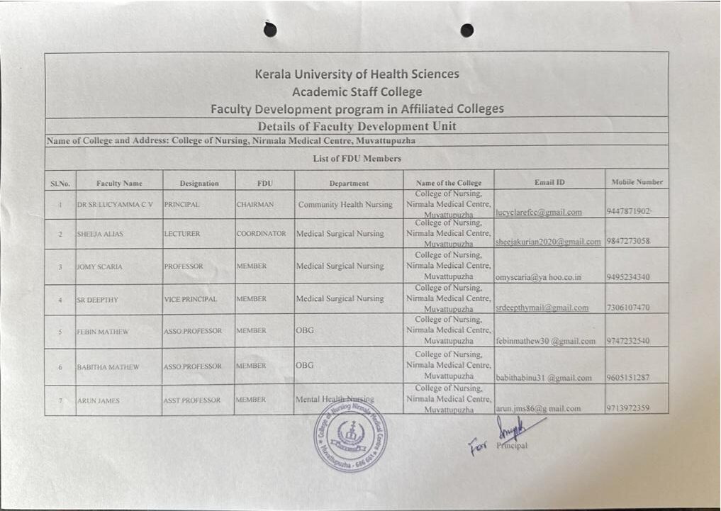 At the College of Nursing, Nirmala Medical Centre, we recognize the importance of academic collaboration in fostering excellence in nursing education, research, and professional development. Our institution is committed to building strong partnerships with leading healthcare organizations, universities, and research institutions to enhance learning opportunities and advance the field of nursing. Through collaborative initiatives, we provide students with access to innovative educational programs, interdisciplinary research projects, and hands-on clinical training. These partnerships enable us to integrate the latest advancements in nursing science, promote evidence-based practice, and prepare our graduates to meet the evolving challenges of the healthcare industry.